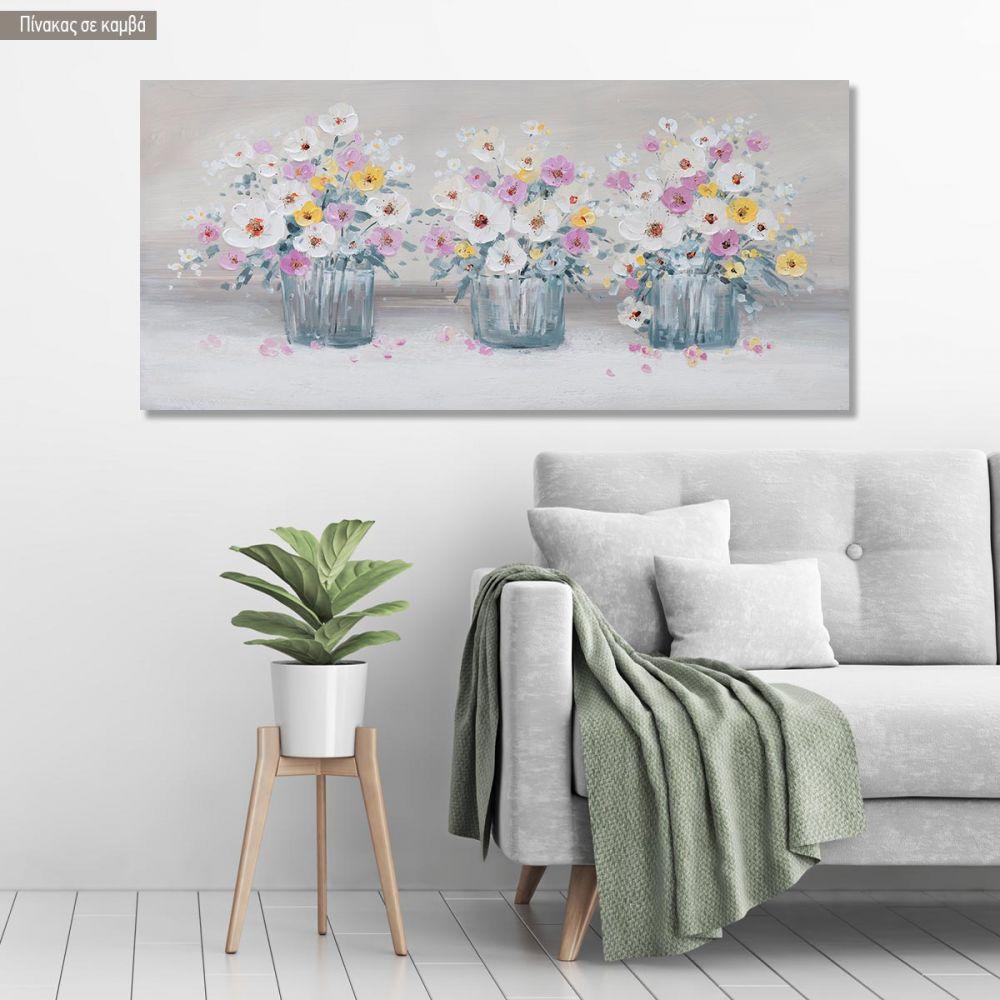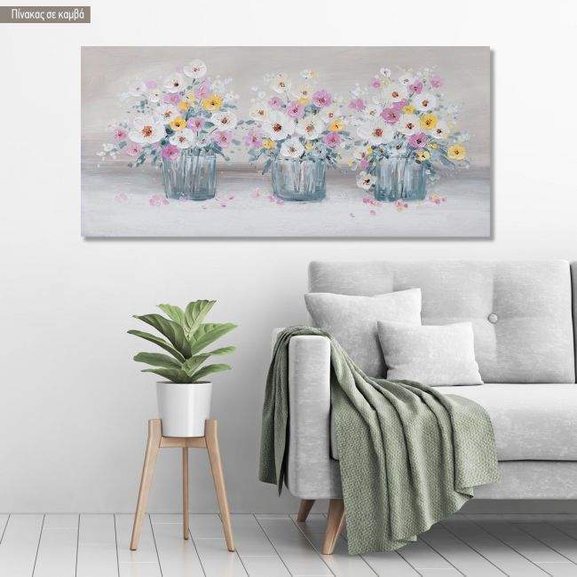 Πίνακας σε καμβά Vases with flowers, πανοραμικός