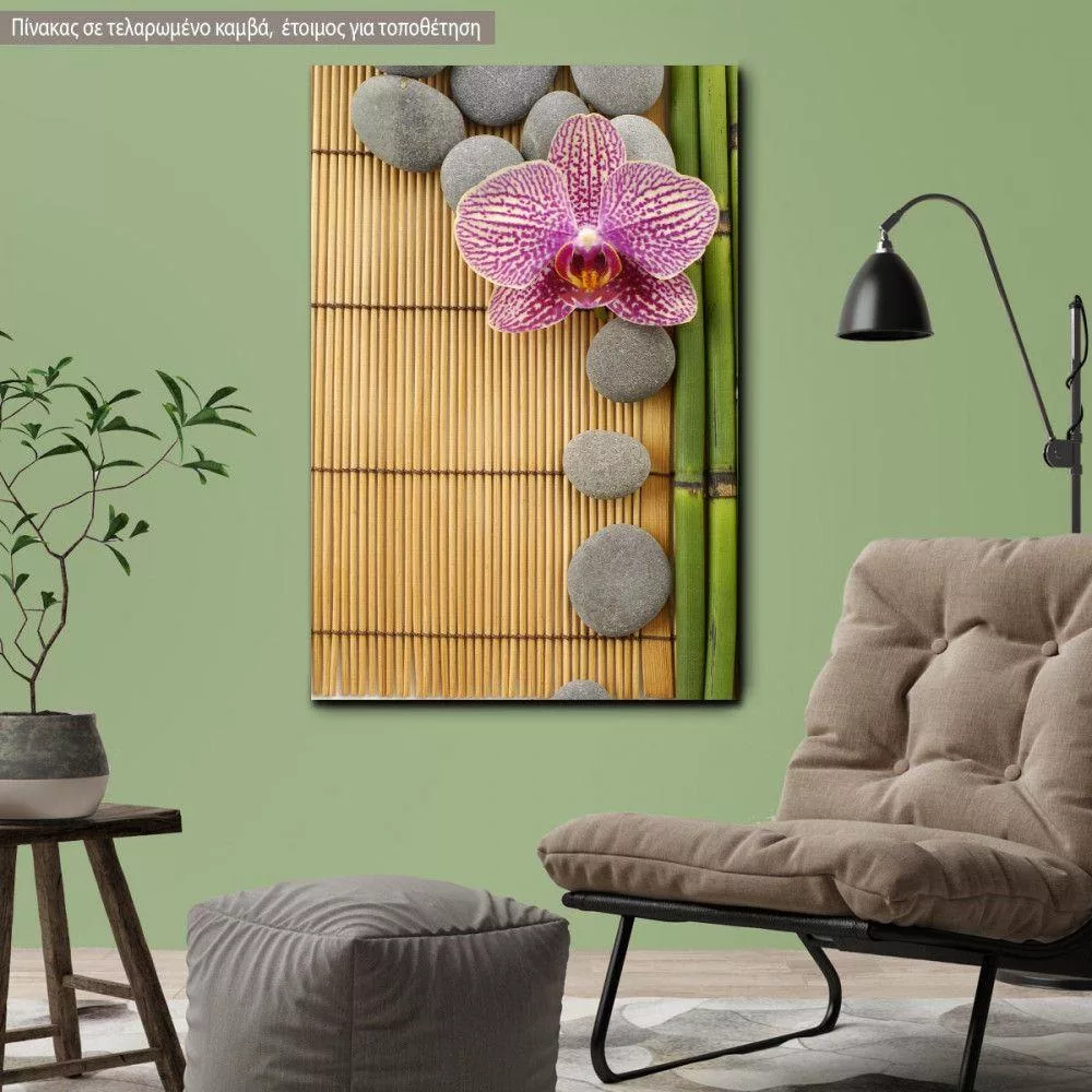 Πίνακας σε καμβά Ορχιδέα, Pink orchid and gray stones