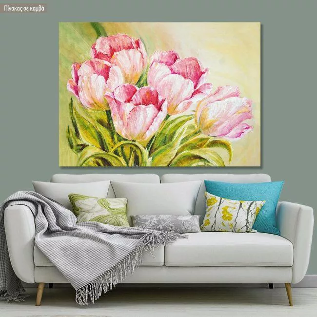Πίνακας σε καμβά Τουλίπες, Pink tulips