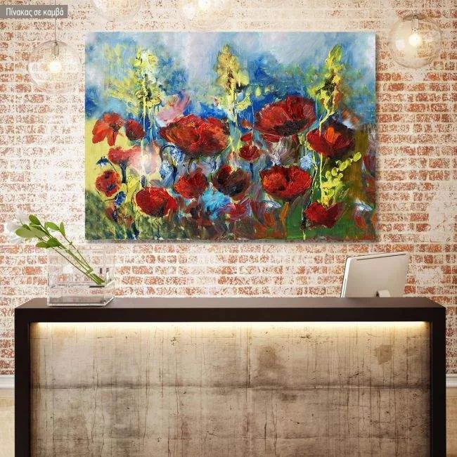 Πίνακας σε καμβά Παπαρούνες, Red spring poppy