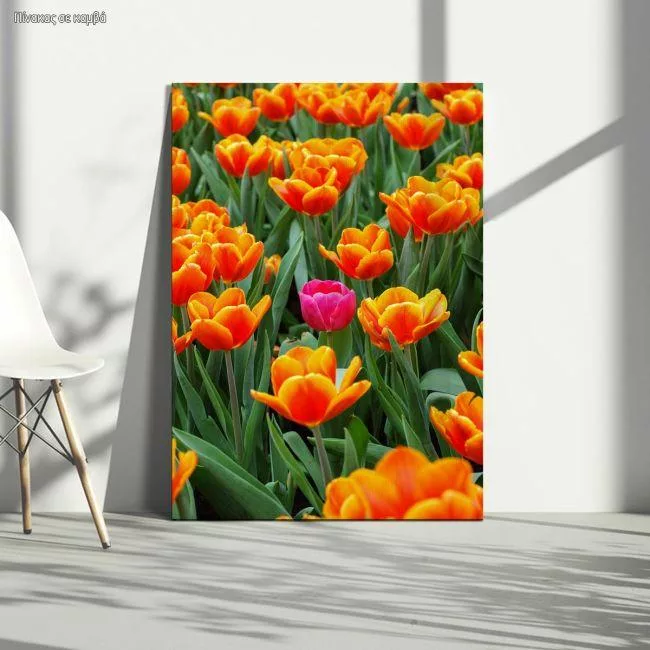 Πίνακας σε καμβά Ροζ τουλίπα ανάμεσα σε πορτοκαλί