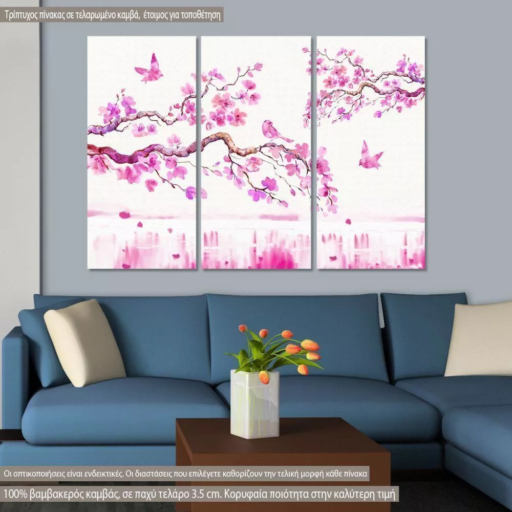 Πίνακας σε καμβά Blossom cherries, τρίπτυχος