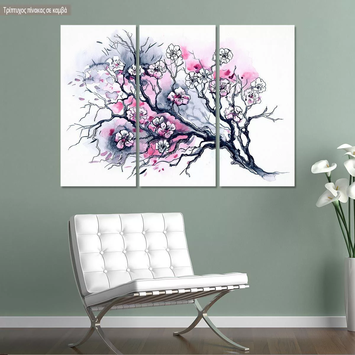 Πίνακας σε καμβά Cherry tree, τρίπτυχος