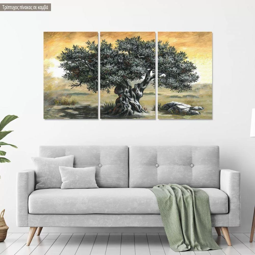 Πίνακας σε καμβά Ελιά, τρίπτυχος πανοραμικός