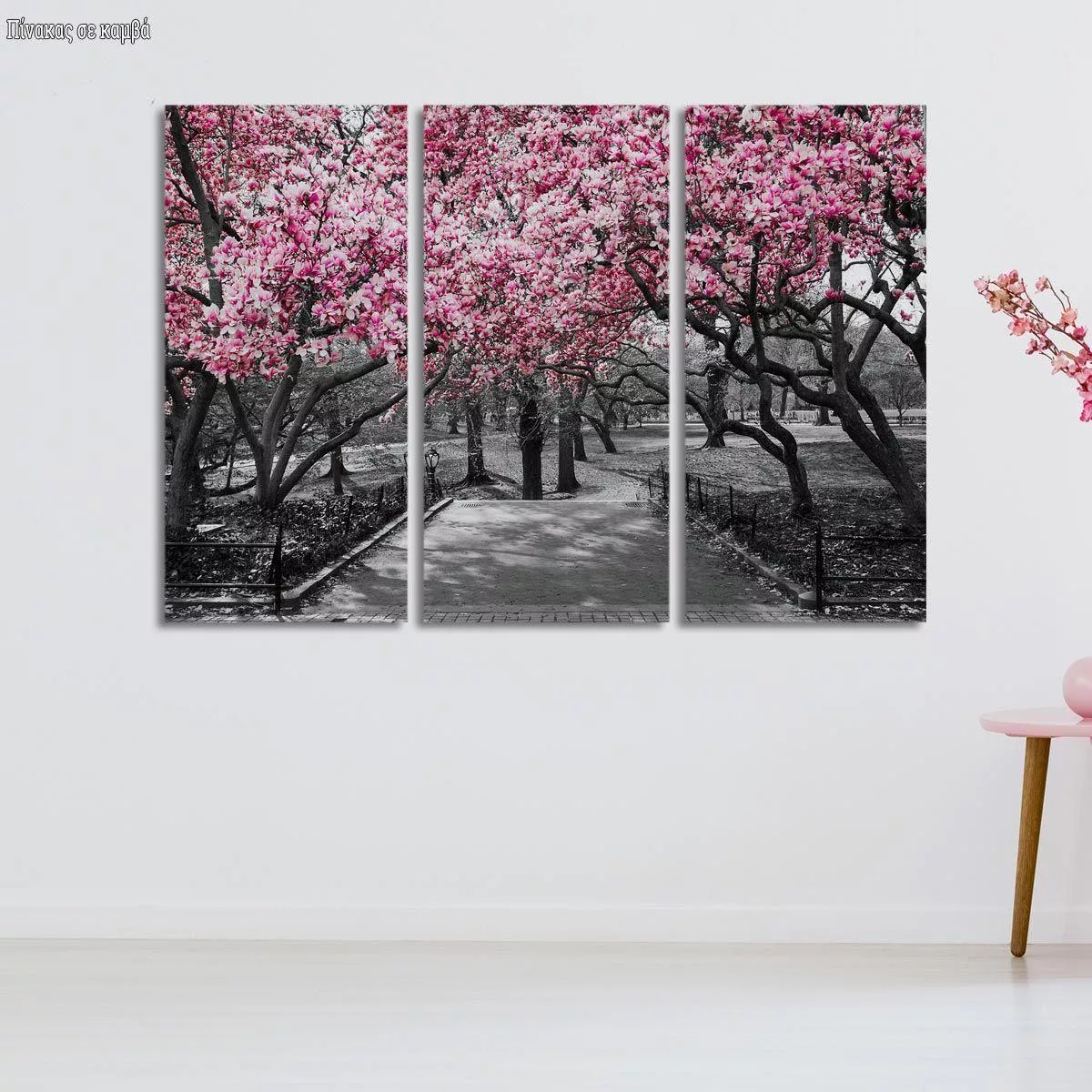Πίνακας σε καμβά Ανθισμένα δέντρα, Pink Blossoms central park, τρίπτυχος