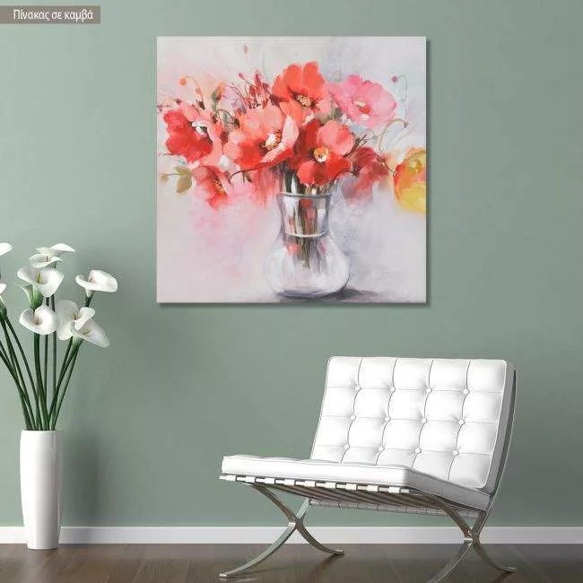 Πίνακας σε καμβά Vase with red flowers
