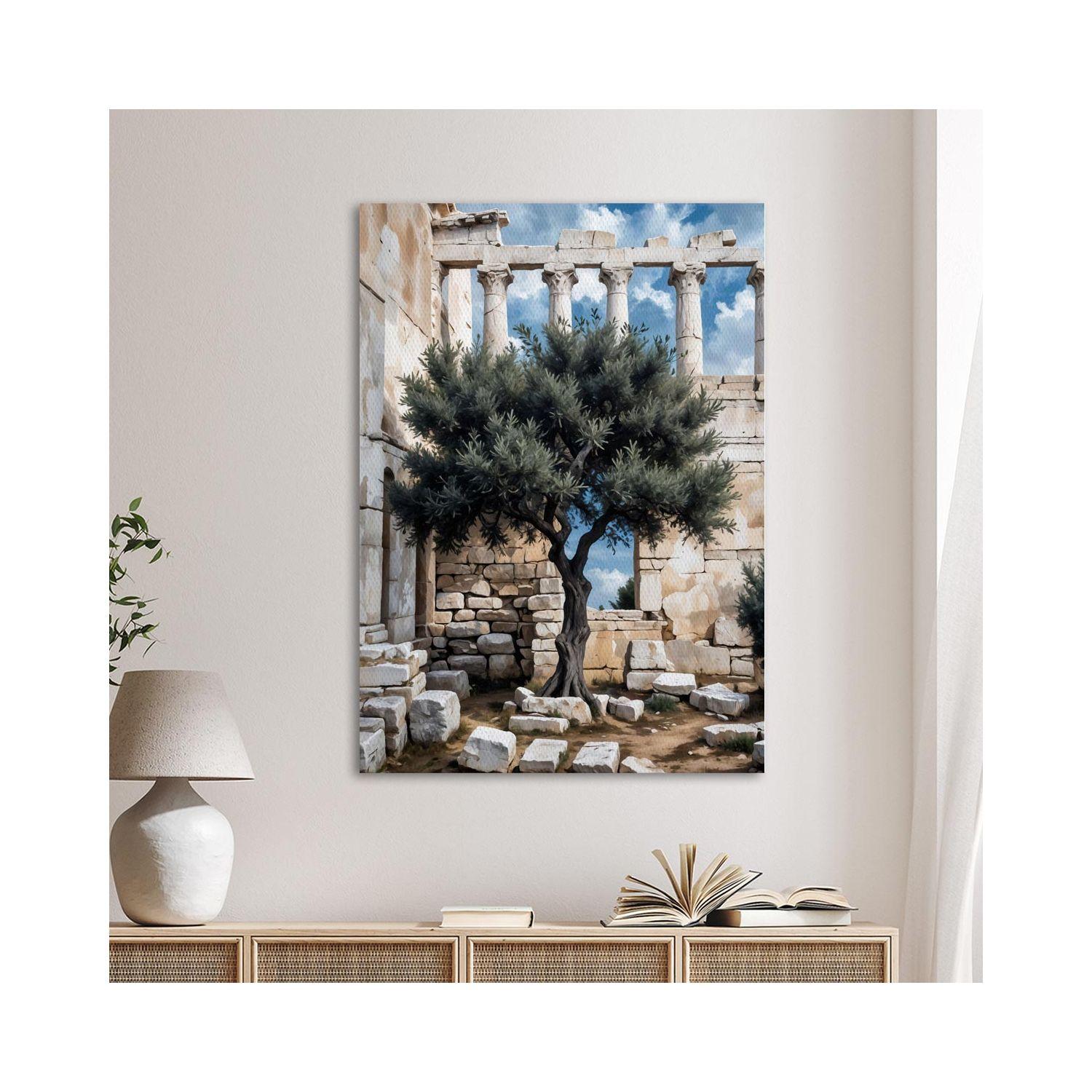 Πίνακας ζωγραφικής Ελιά με φόντο αρχαία χαλάσματα