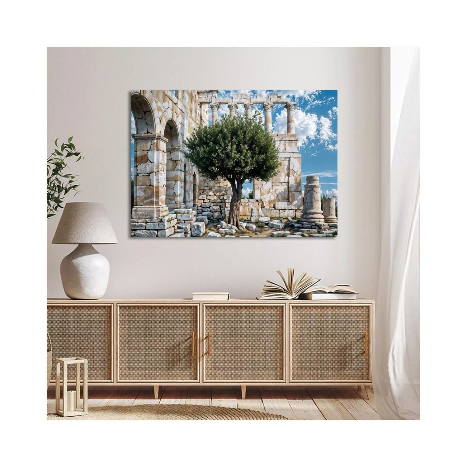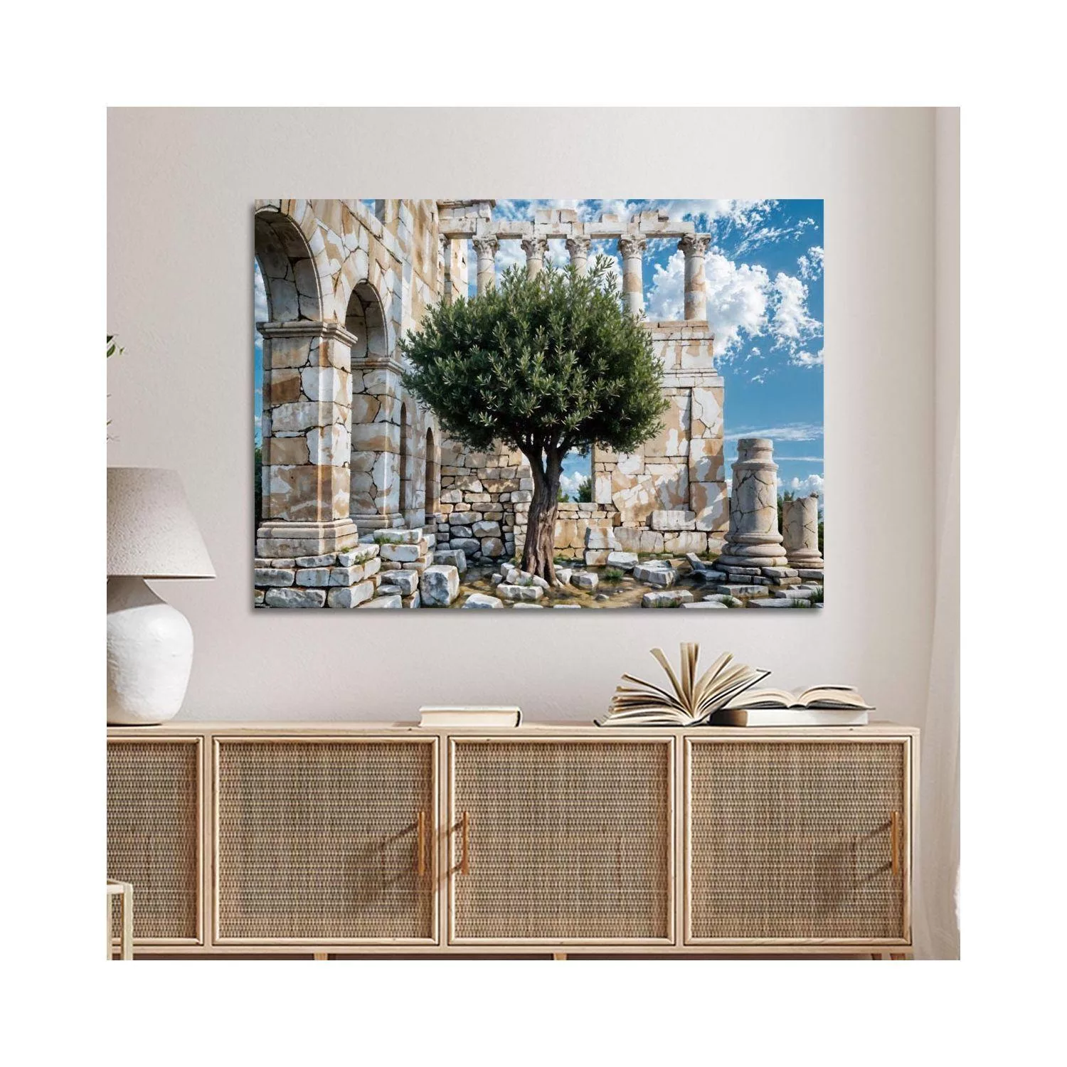 Πίνακας ζωγραφικής Ελιά με φόντο αρχαία χαλάσματα Καμβάς τελαρωμένος Όψη 4
