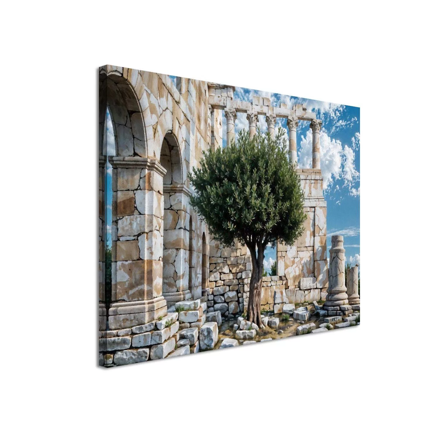 Πίνακας ζωγραφικής Ελιά με φόντο αρχαία χαλάσματα Καμβάς τελαρωμένος Όψη 3