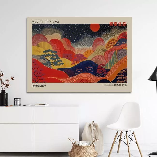 Πίνακας ζωγραφικής Mountains and red sun, reart (original YAYOI Kusama)