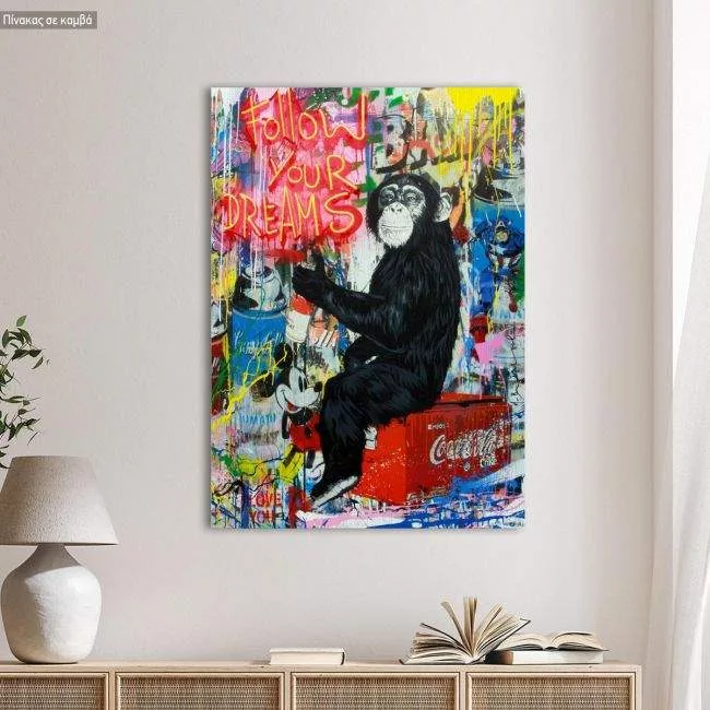 Πίνακας σε καμβά Follow your dreams monkey