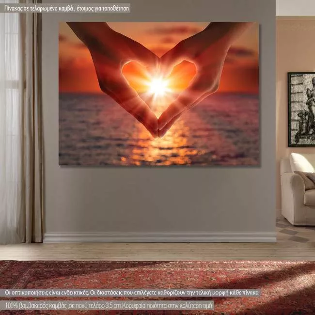 Πίνακας σε καμβά Ηλιοβασίλεμα, Sunset in heart hands