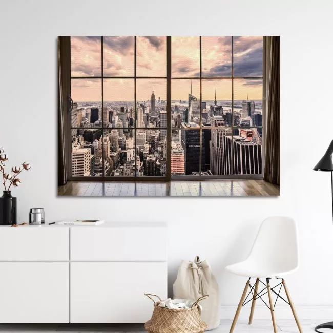 Πίνακας σε καμβά Νέα Υόρκη, New York city skyline, window view