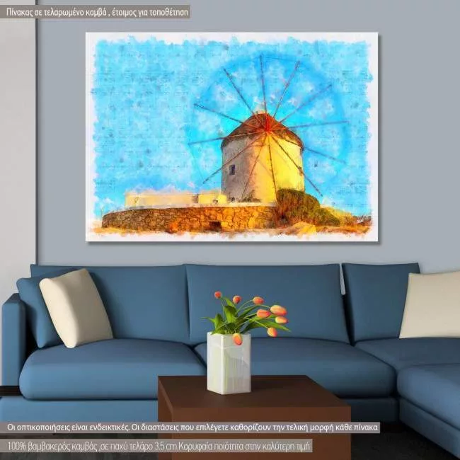Πίνακας σε καμβά Ανεμόμυλος, Μύκονος watercolor
