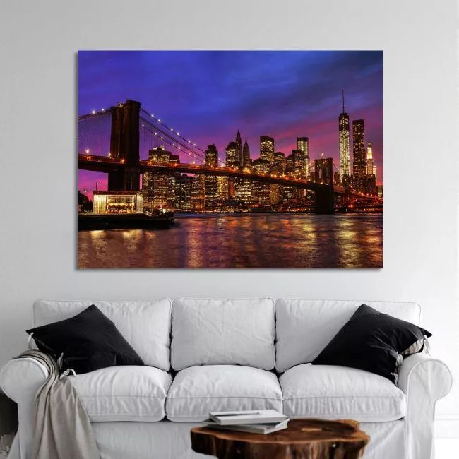 Πίνακας σε καμβά Brooklyn bridge and Manhattan at sunset