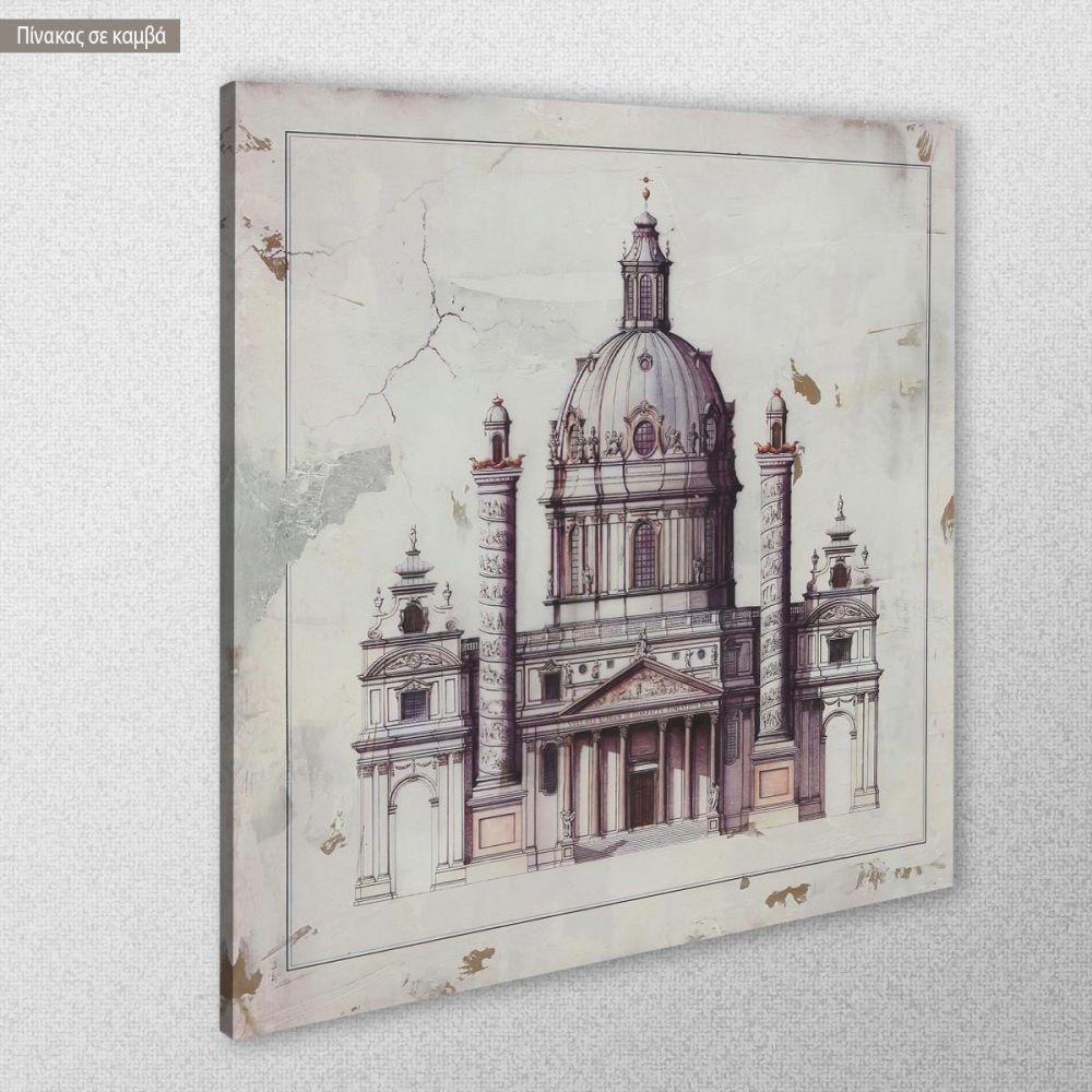 Πίνακας σε καμβά Building in gravure, τετράγωνο