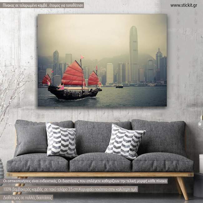Πίνακας σε καμβά Χονγκ Κονγκ, Chinese sailboat in Hong Kong