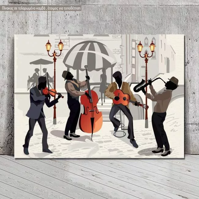 Πίνακας σε καμβά Street cafe with musicians