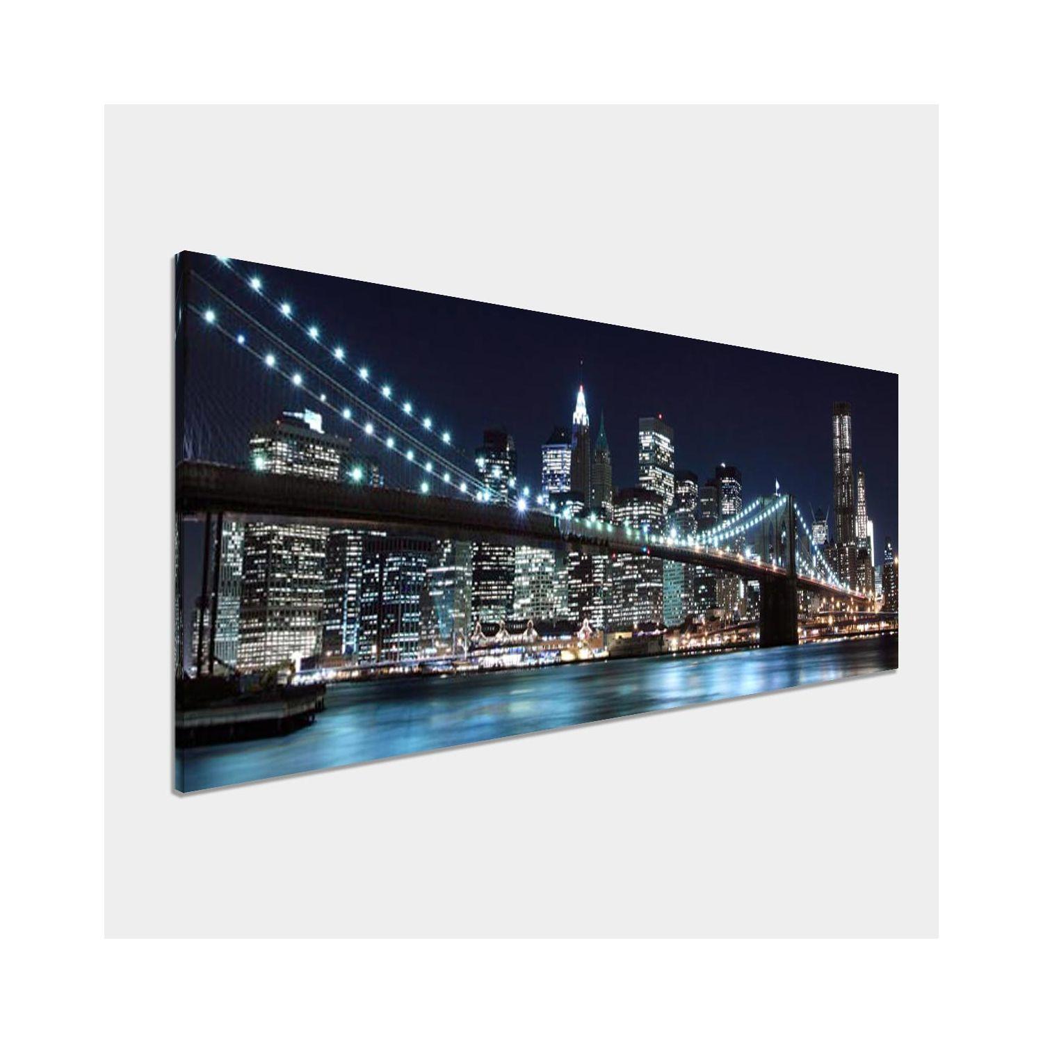 Πίνακας σε καμβά Brooklyn bridge dark blue, πανοραμικός
