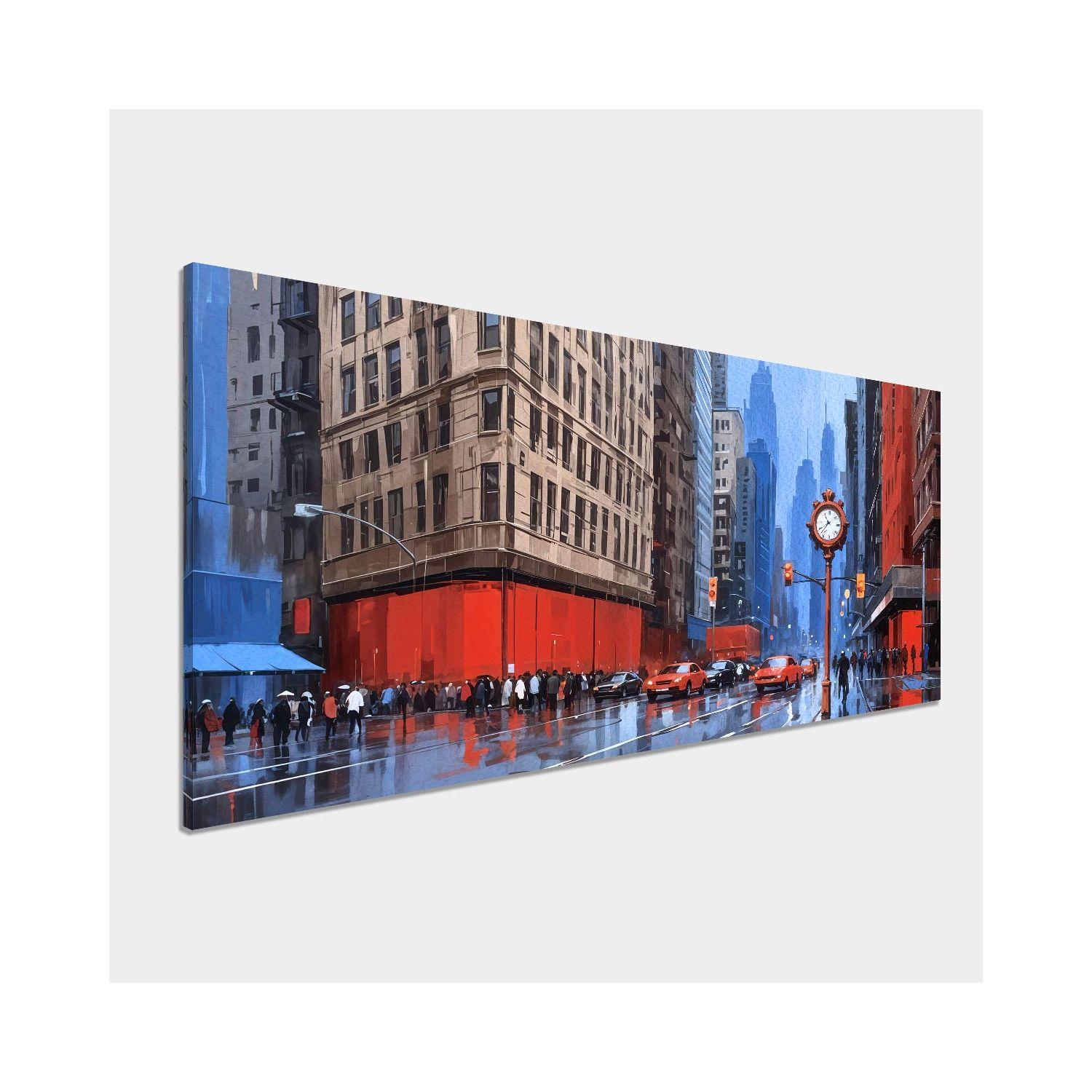 Πίνακας σε καμβά City in blue and red, πανοραμικός