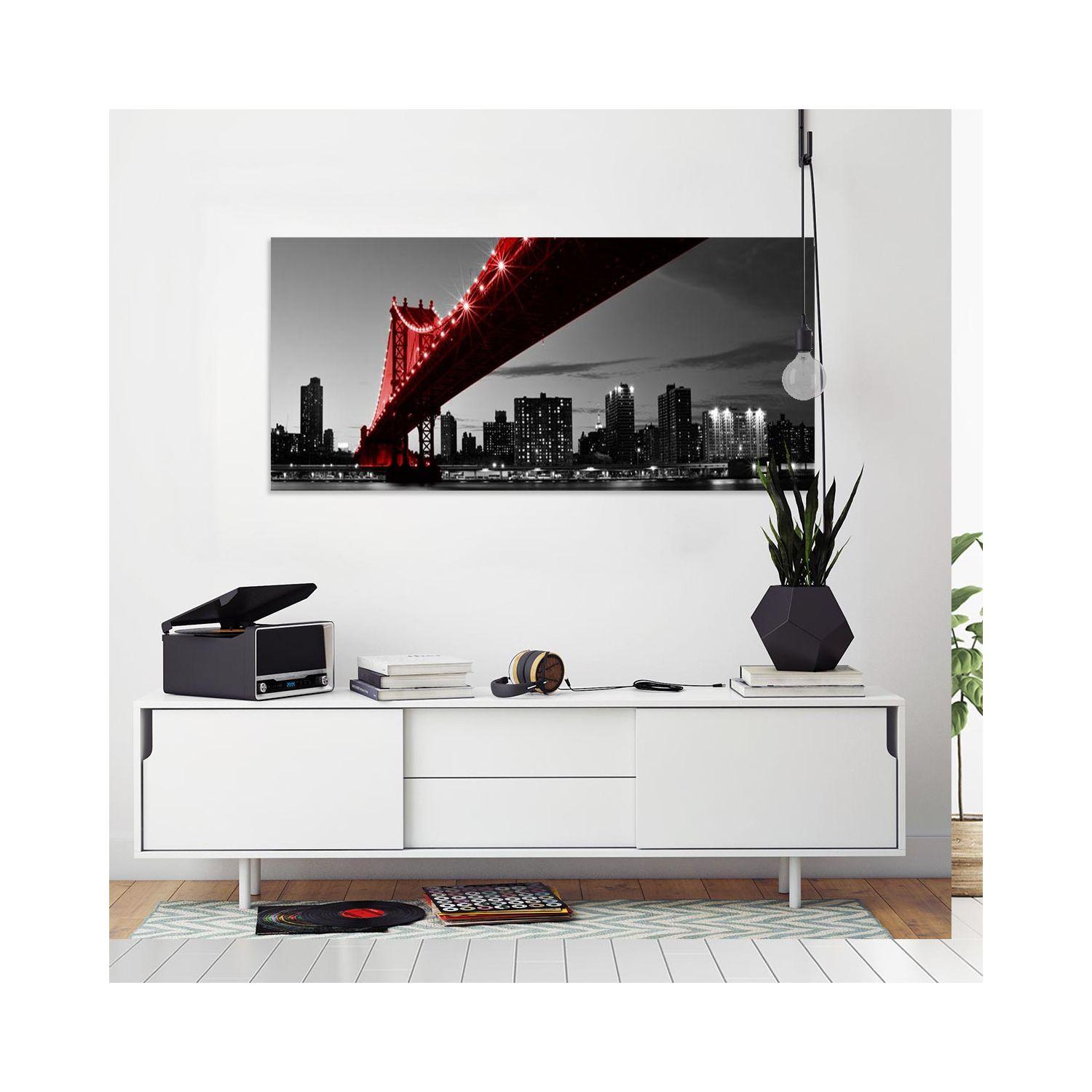 Πίνακας σε καμβά Red Manhattan bridge, πανοραμικός
