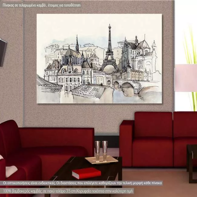 Πίνακας σε καμβά Παρίσι, Paris scenery watercolors