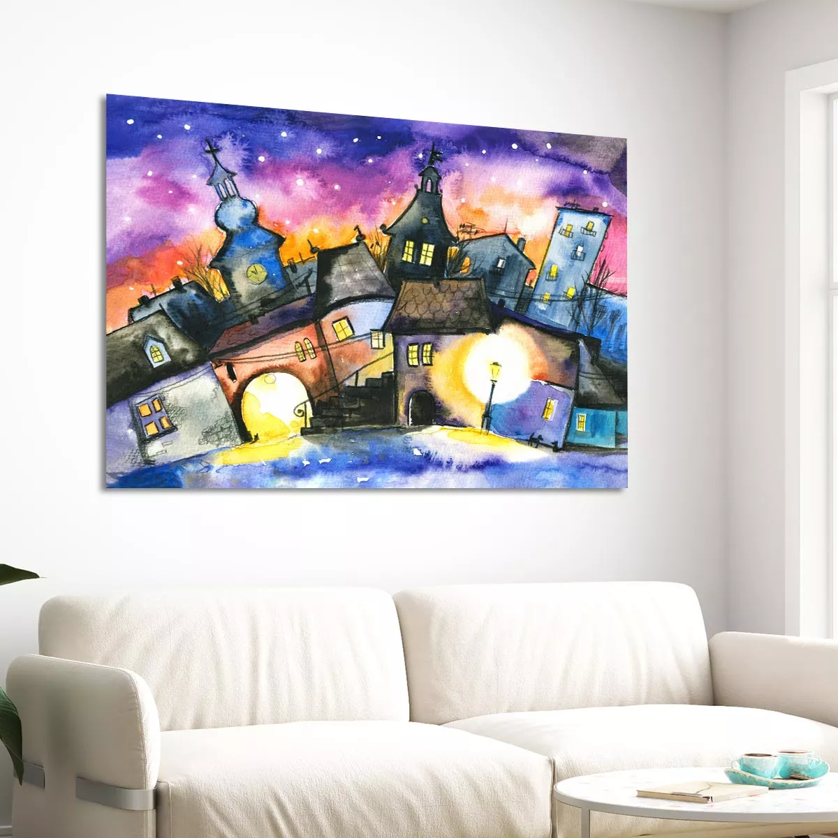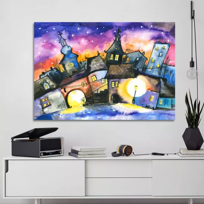 Πίνακας σε καμβά Small town at night