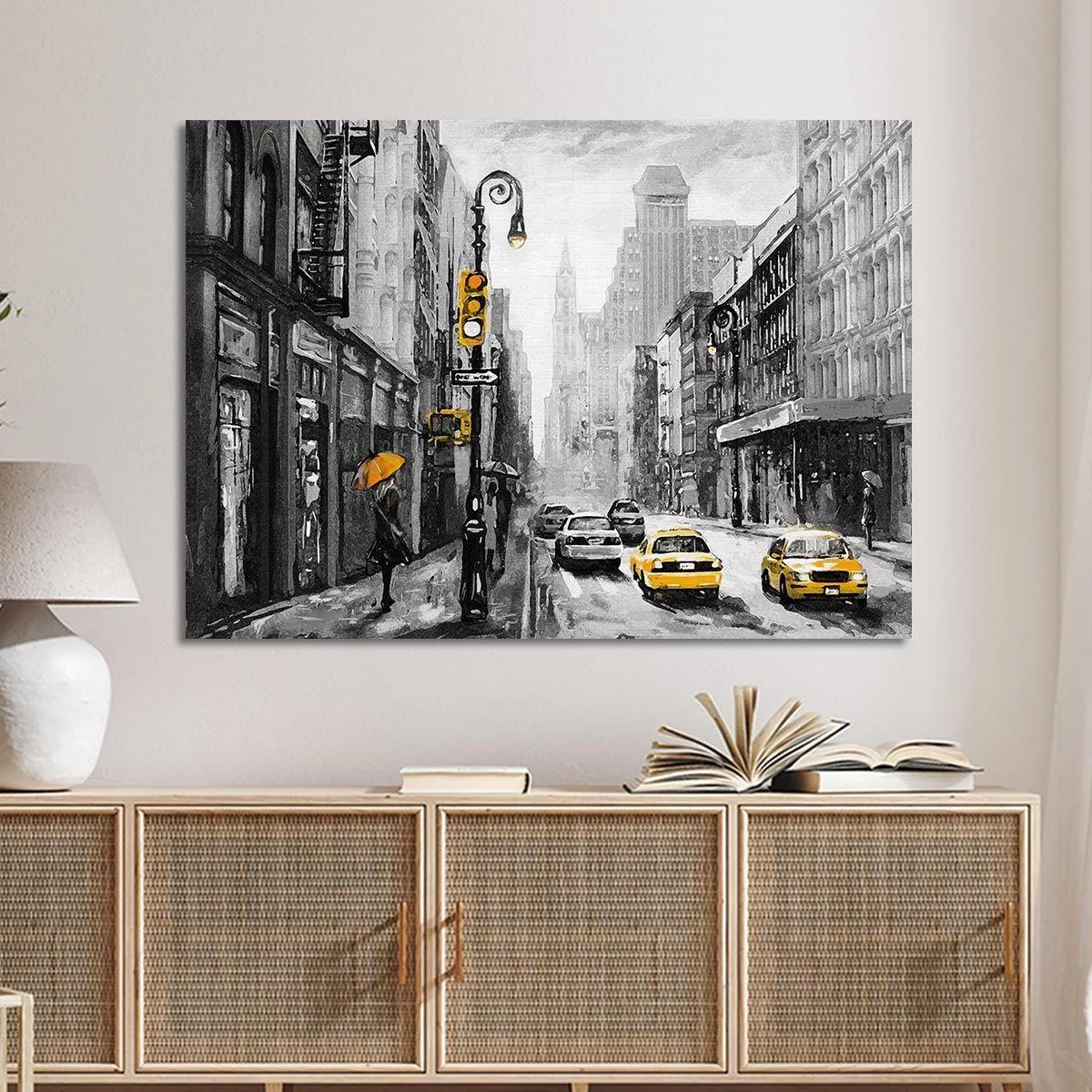 Πίνακας σε καμβά Νέα Υόρκη, Street view of New York, yellow and grayscale, τριπτυχος