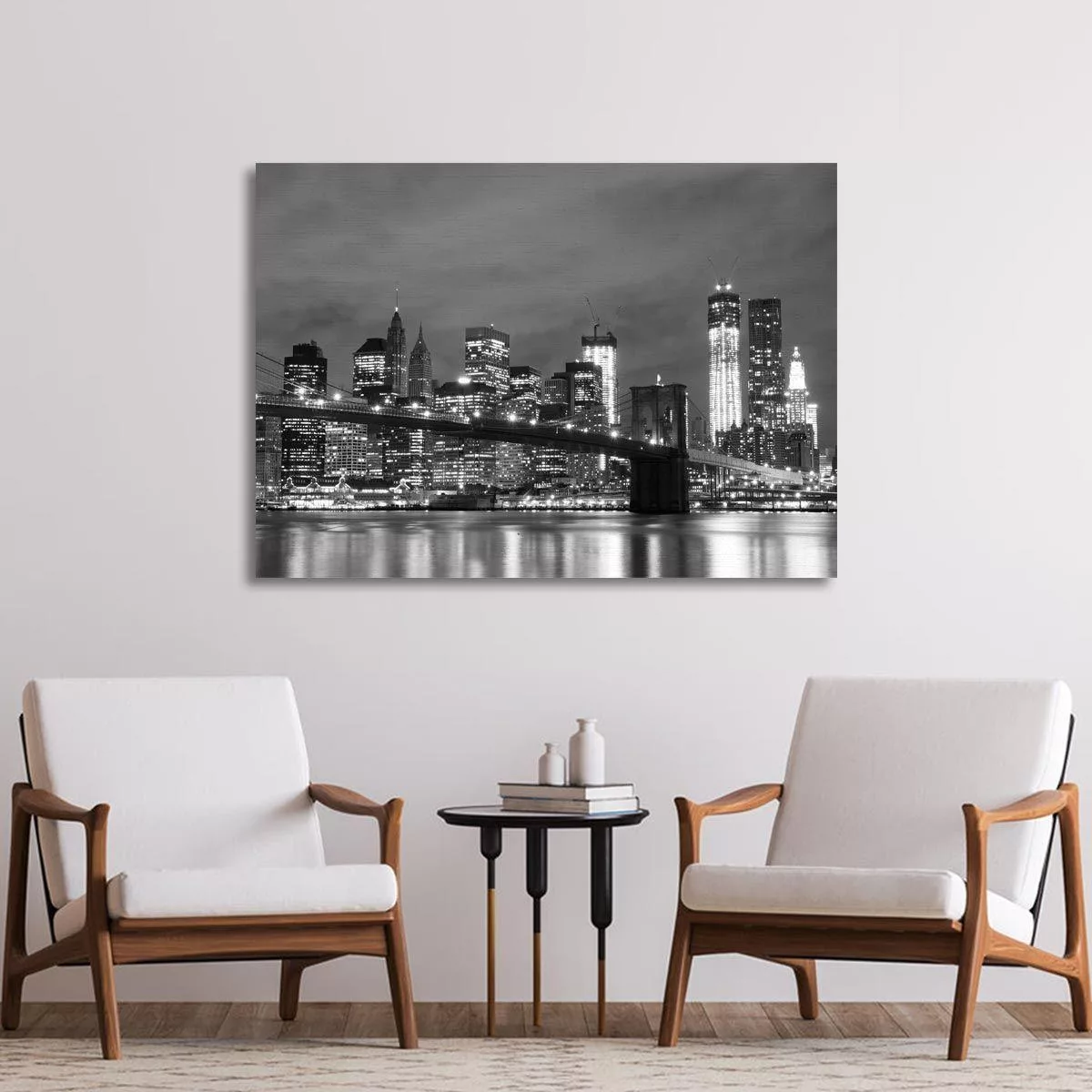 Πίνακας σε καμβά Νέα Υόρκη γέφυρα, View of Brooklyn bridge grayscale