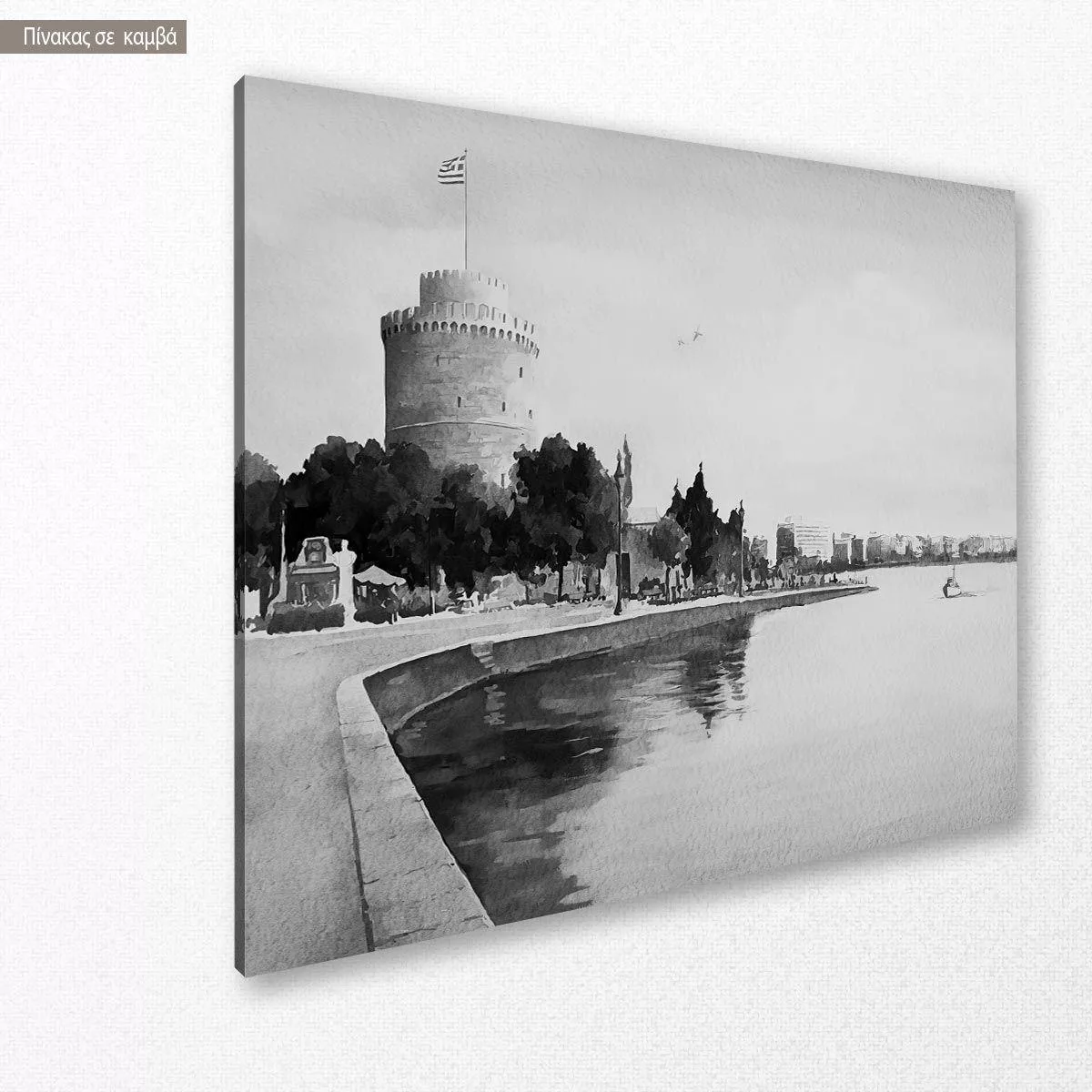 Πίνακας σε καμβά Θεσσαλονίκη watercolors grayscale
