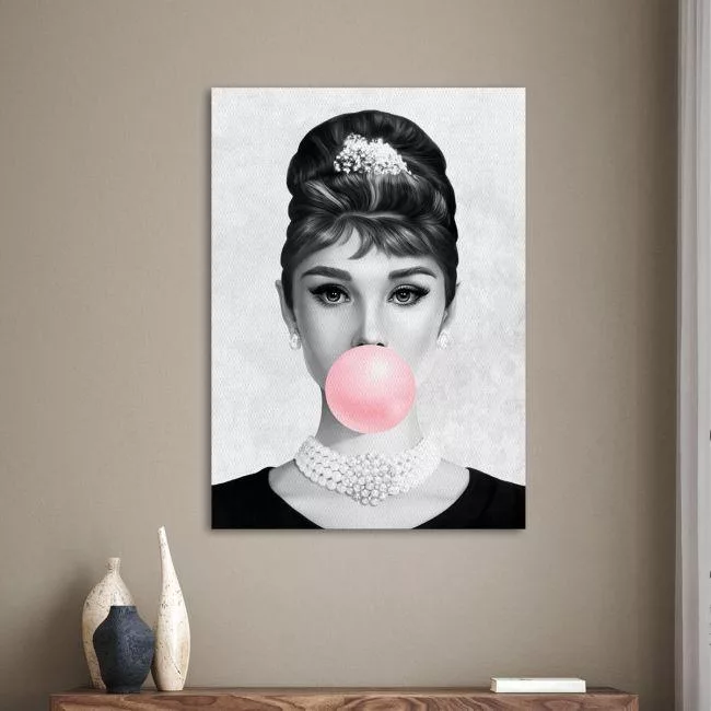 Πίνακας σε καμβά Προσφορά 40x60 cm, Audrey Hepburn bubble gum