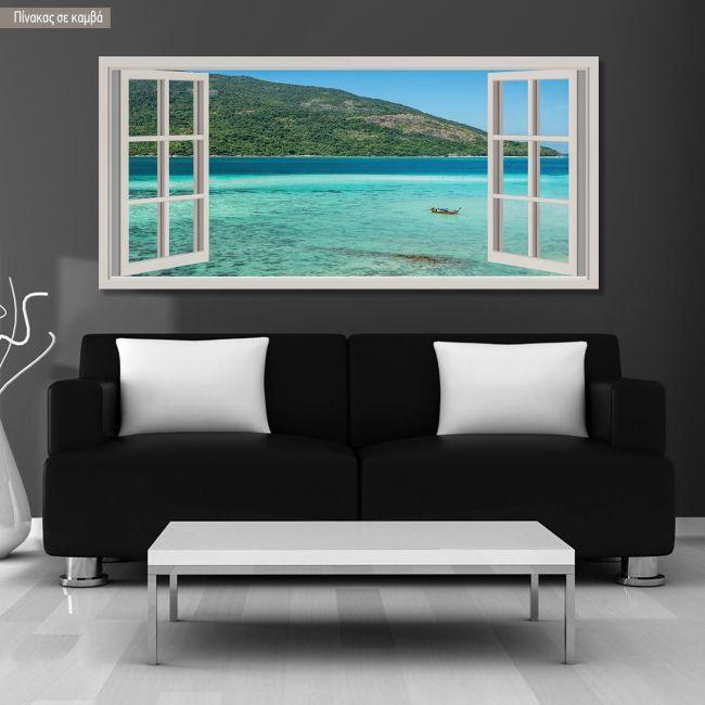 Πίνακας σε καμβά Προσφορά 150x70 cm Summer vacation window, πανοραμικός