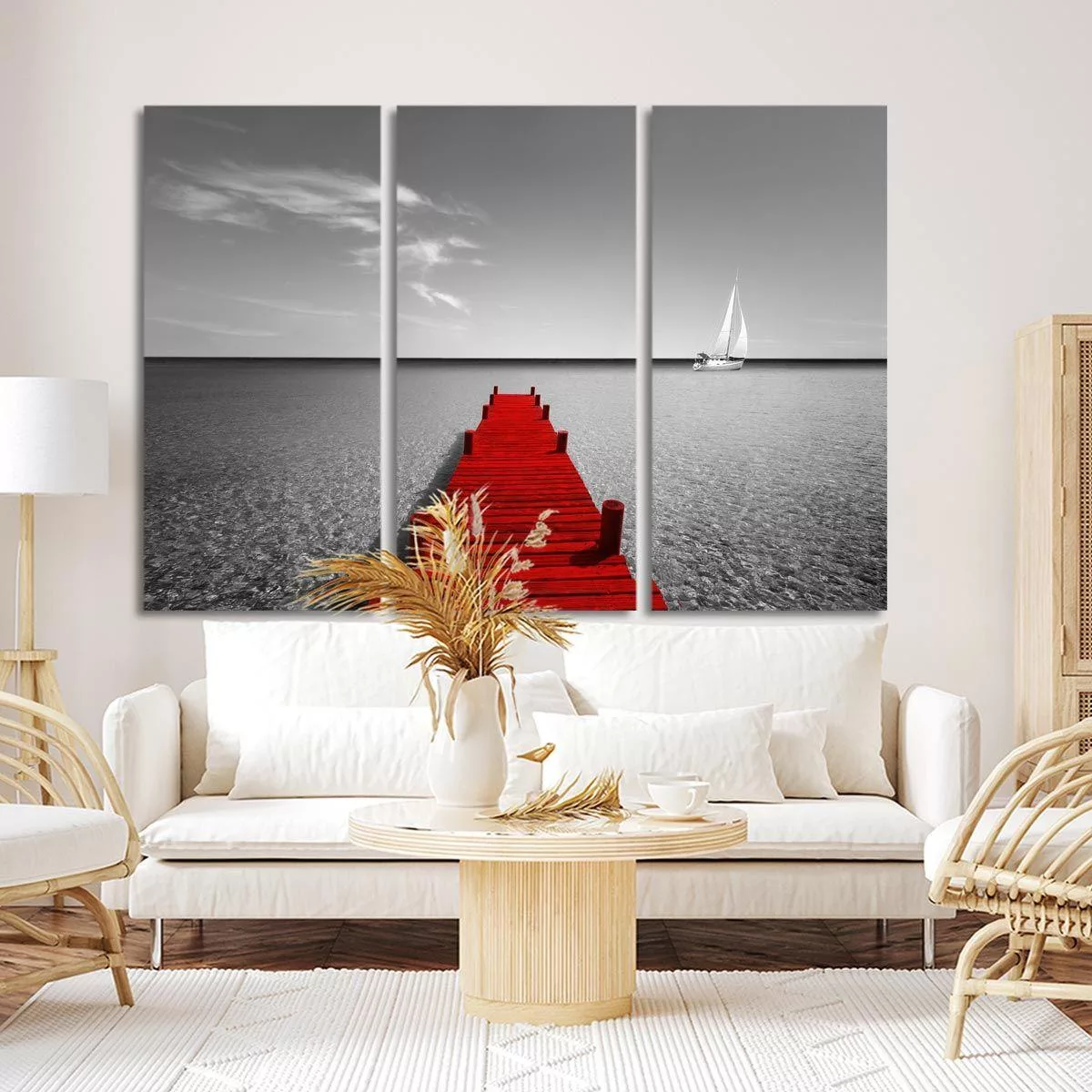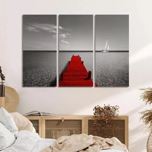 Πίνακας σε καμβά Κόκκινη προβλήτα, Red view, τρίπτυχος