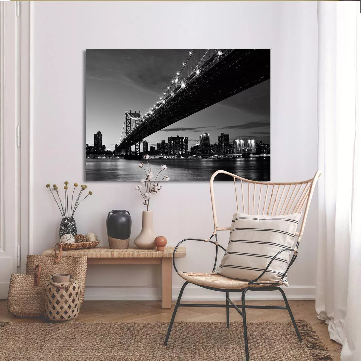 Πίνακας σε καμβά Νέα Υόρκη γέφυρα, Manhattan bridge grayscale