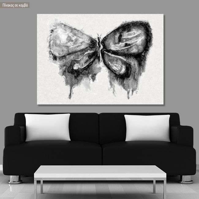Πίνακας σε καμβά Watercolor grayscale butterfly