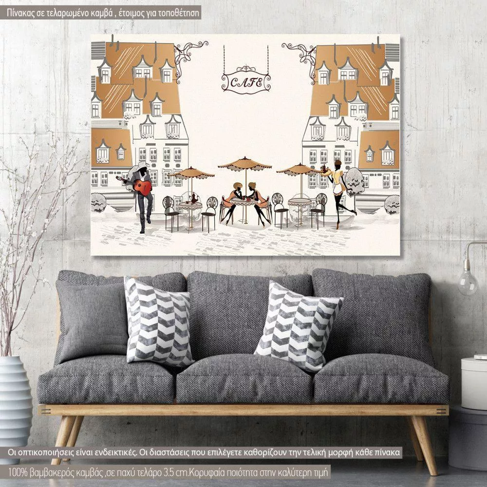 Πίνακας σε καμβά Cafe with guitarist