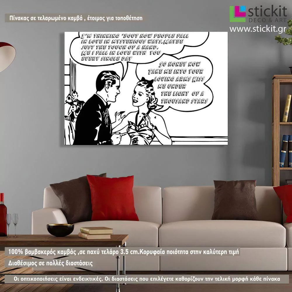 Πίνακας σε καμβά How people fall in love, Comic art