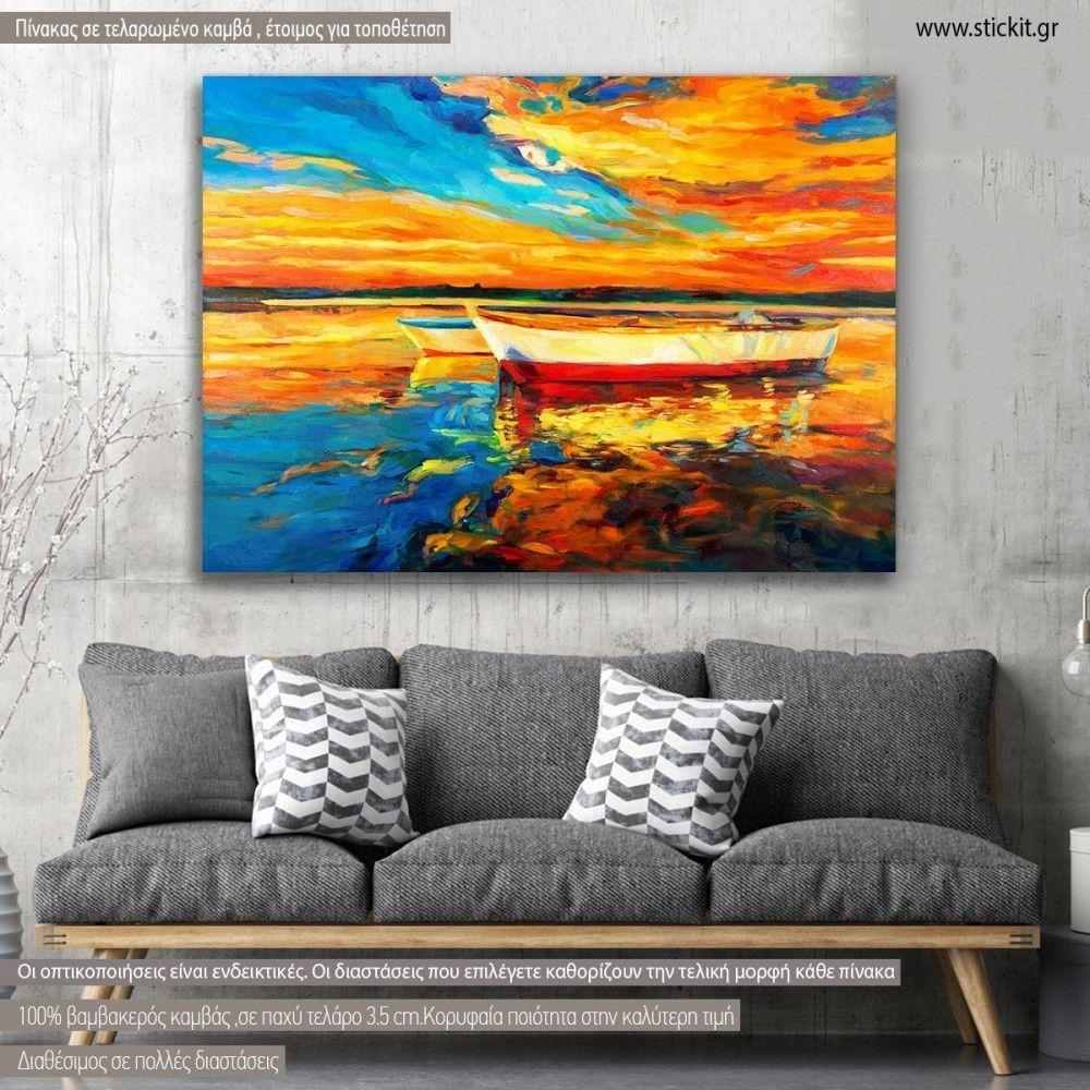 Πίνακας σε καμβά βάρκες στο ηλιοβασίλεμα, Boats