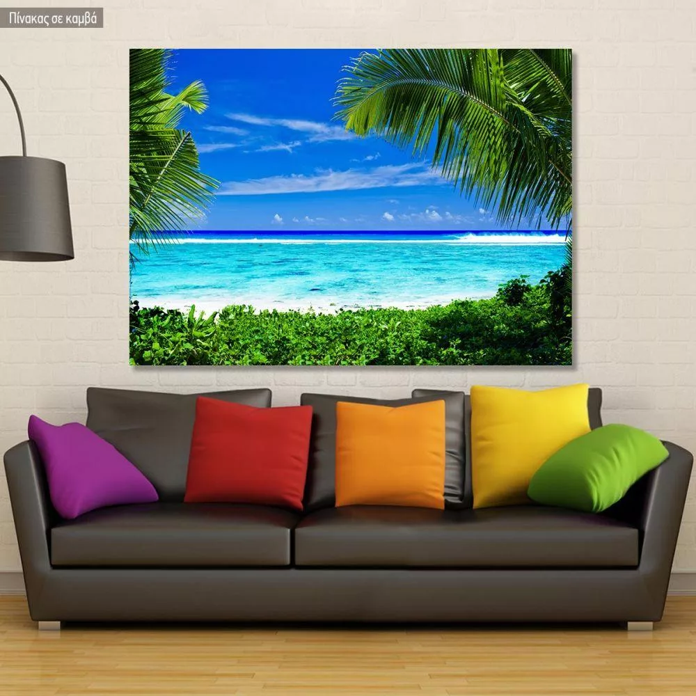 Πίνακας σε καμβά τροπική παραλία, Palm framed tropical beach