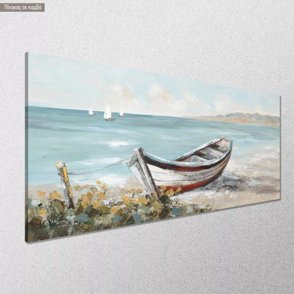 Πίνακας σε καμβά Boat by the sea side, πανοραμικός