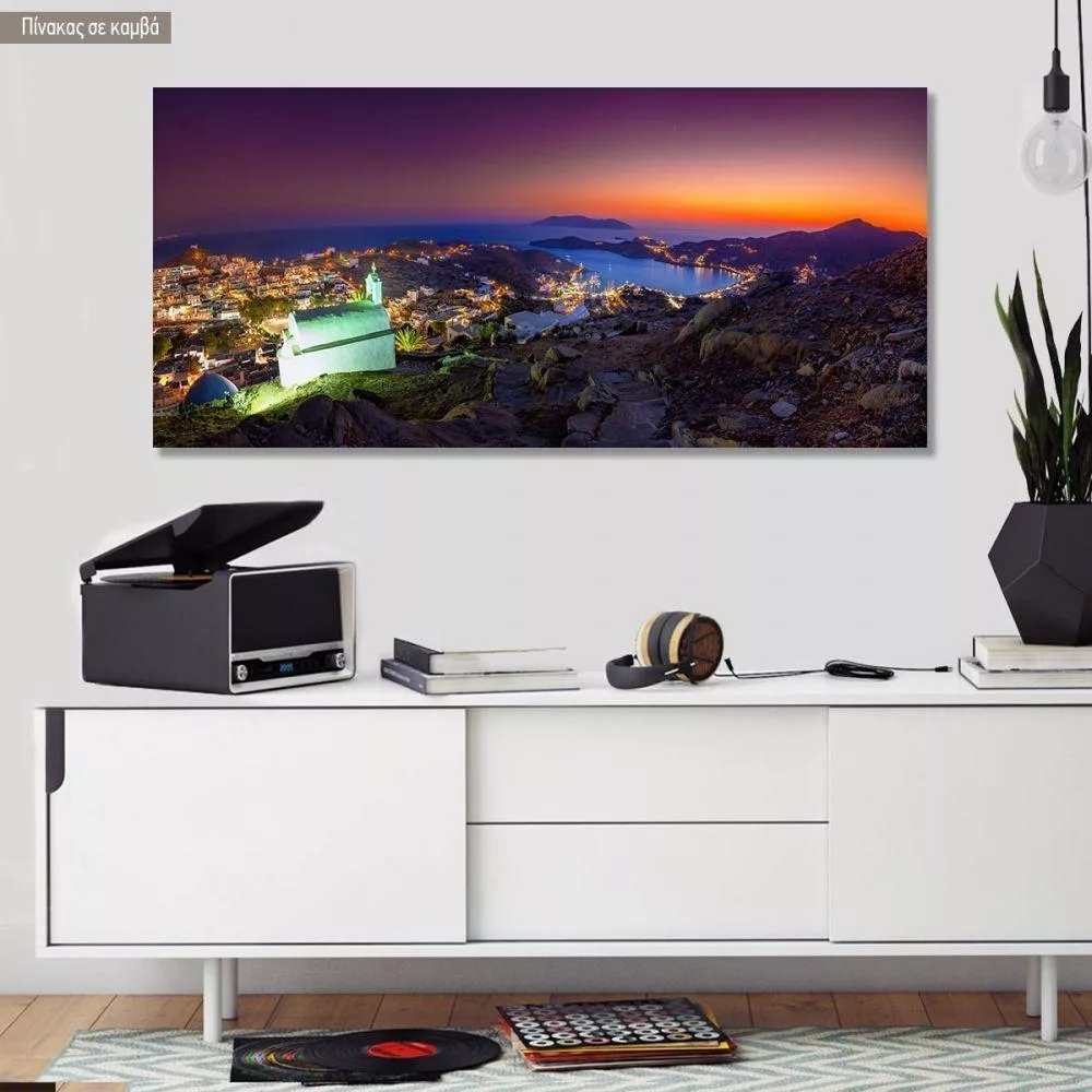 Πίνακας σε καμβά Νυχτερινό πανόραμα στην Ίο, πανοραμικός