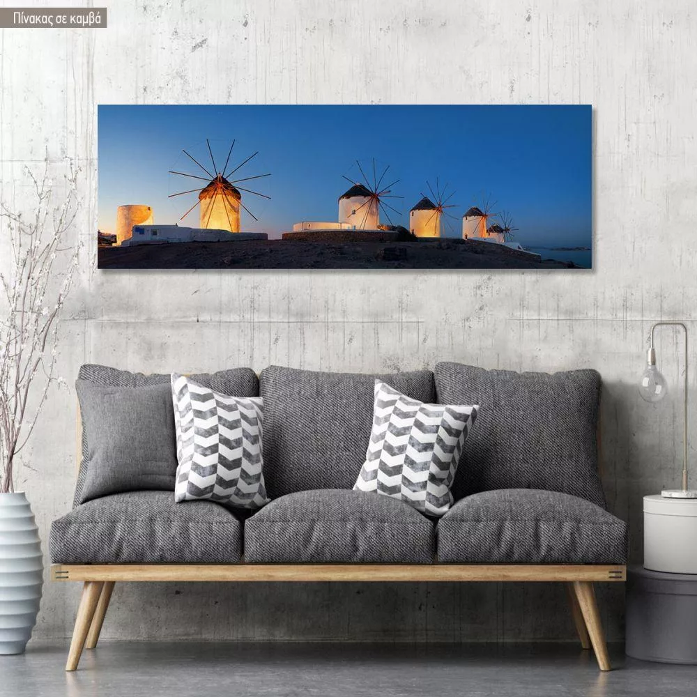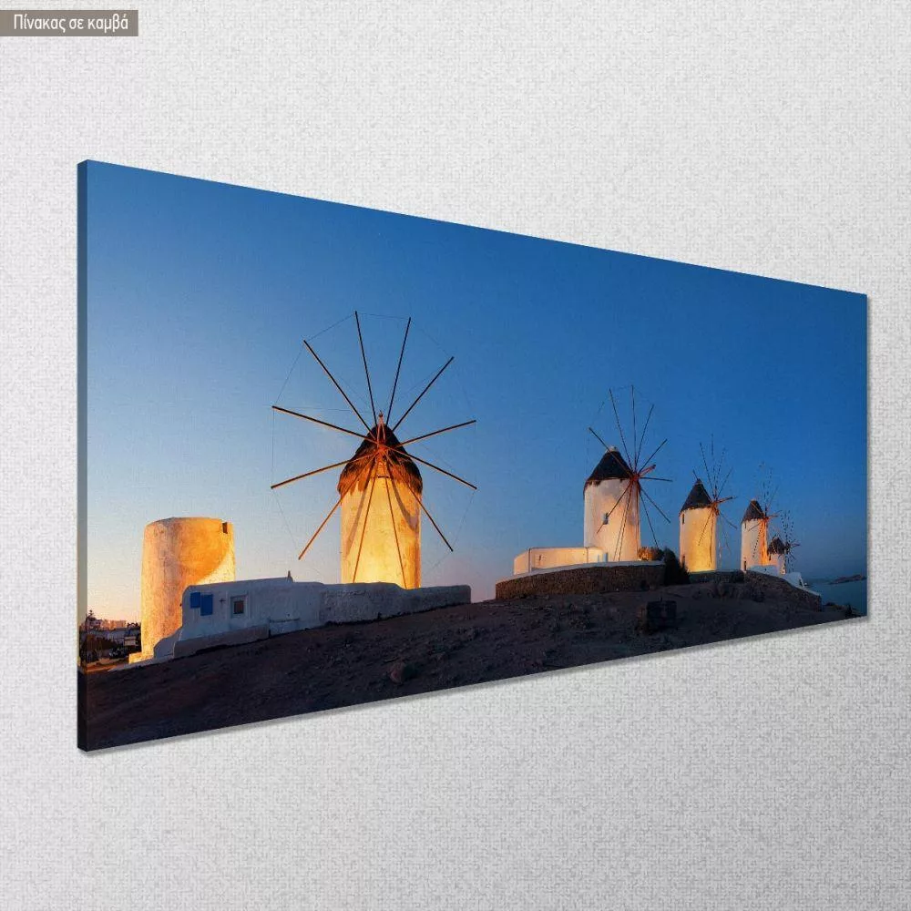 Πίνακας σε καμβά Mykonos windmills by night, πανοραμικός