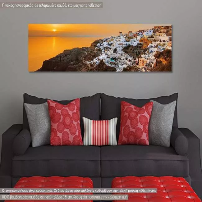 Πίνακας σε καμβά Oia at sunset, πανοραμικός