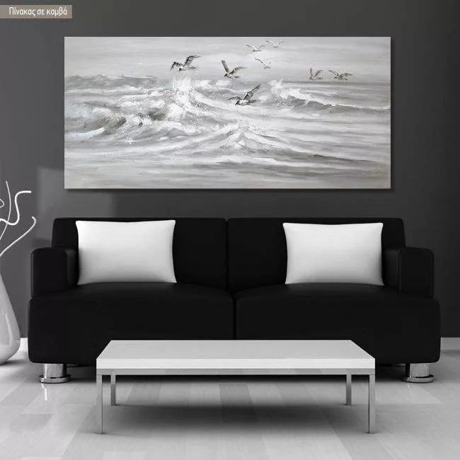 Πίνακας σε καμβά Over the gray sea, πανοραμικός