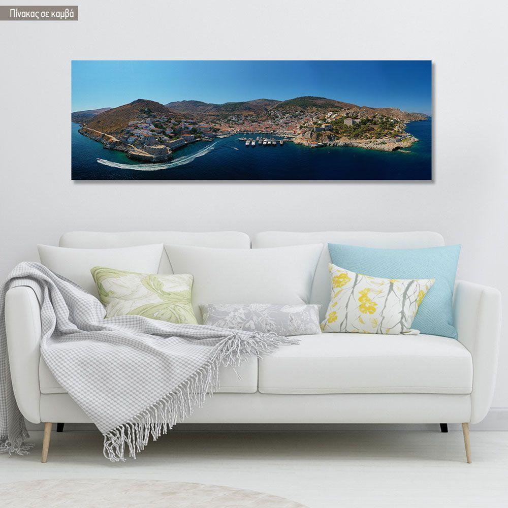 Πίνακας σε καμβά Ύδρα, με το λιμάνι, πανοραμικός