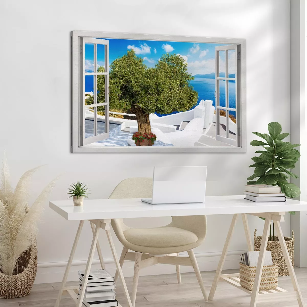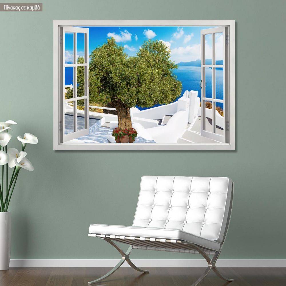 Παράθυρο με θέα (Σαντορίνη),πίνακας σε καμβά