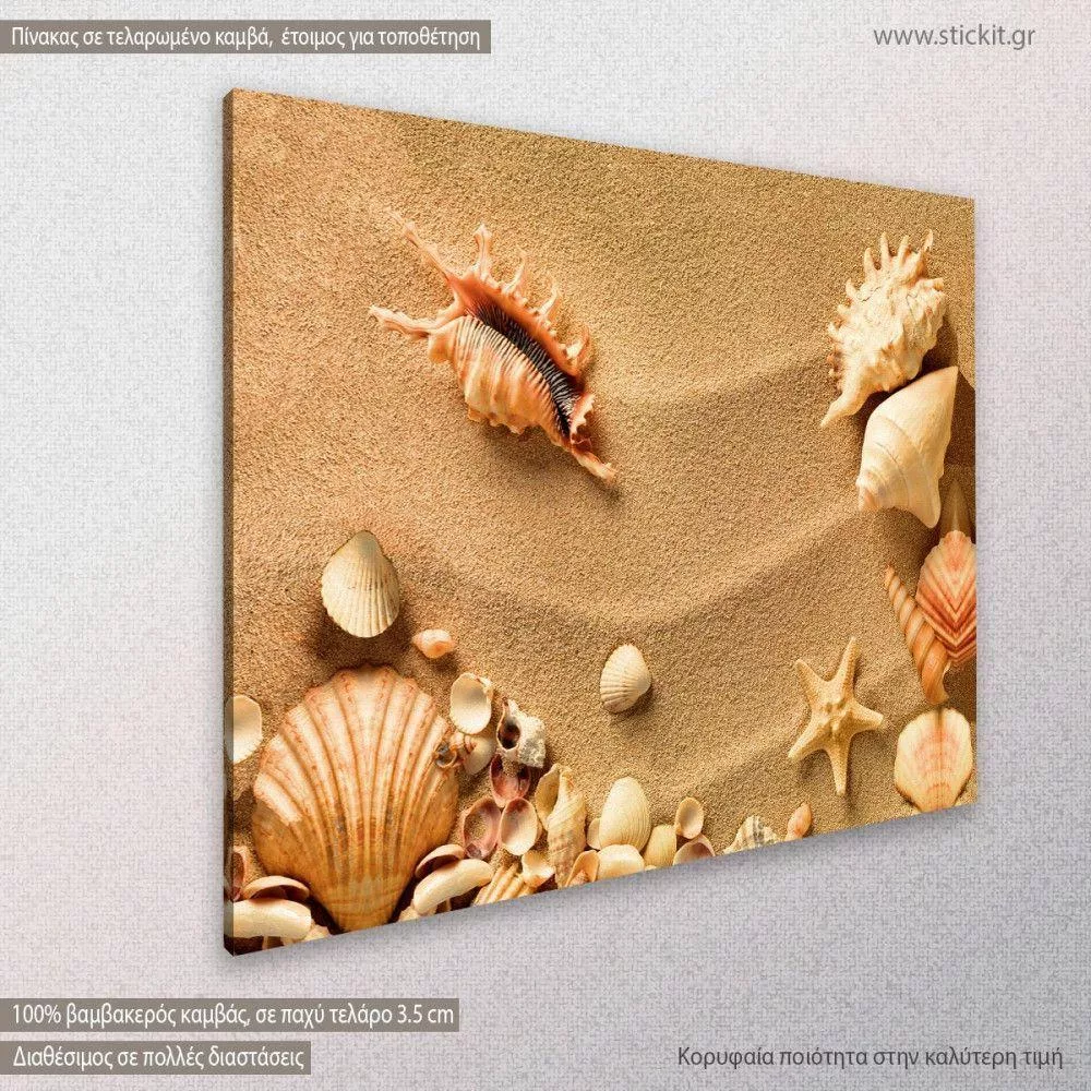Πίνακας σε καμβά Sea shells with sand