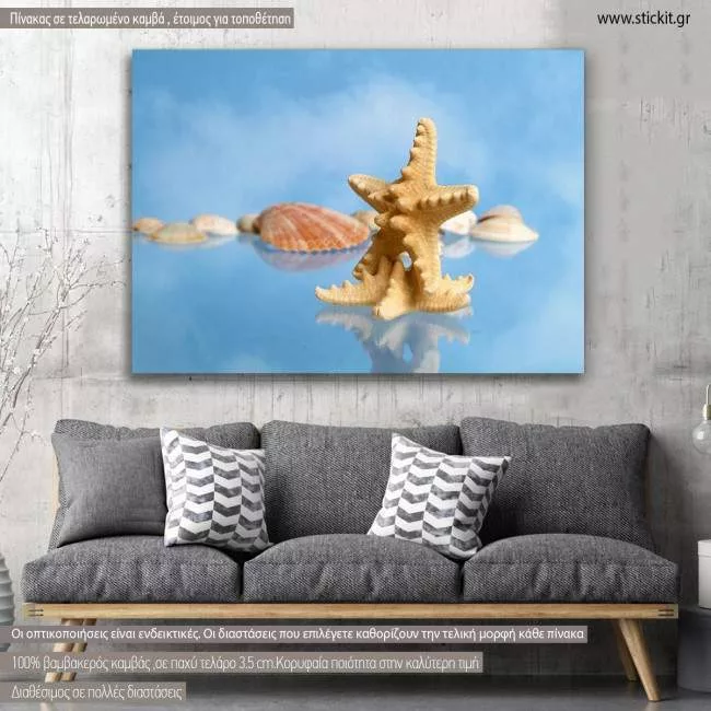 Πίνακας σε καμβά Αστερίας, Stars shells sky blue