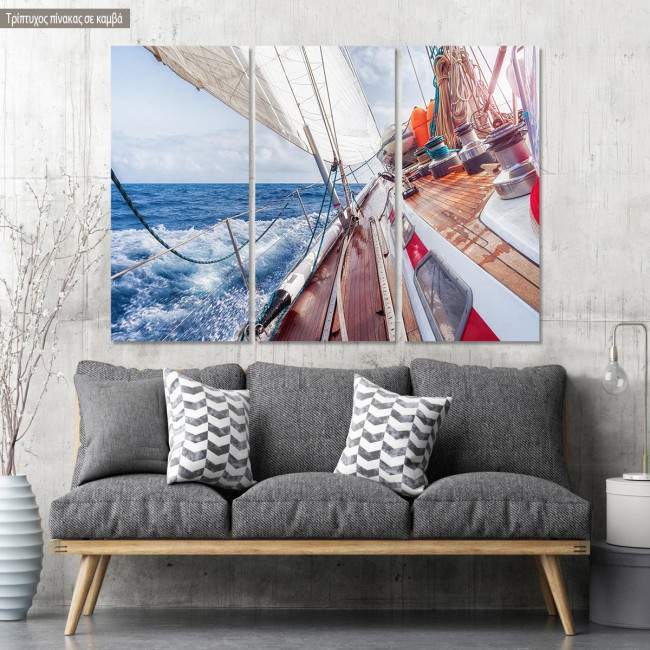 Πίνακας σε καμβά Sail boat navigating on the waves II, τρίπτυχος