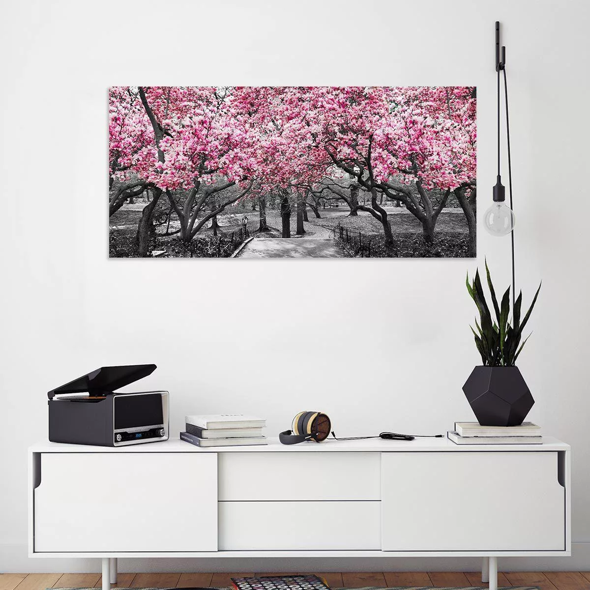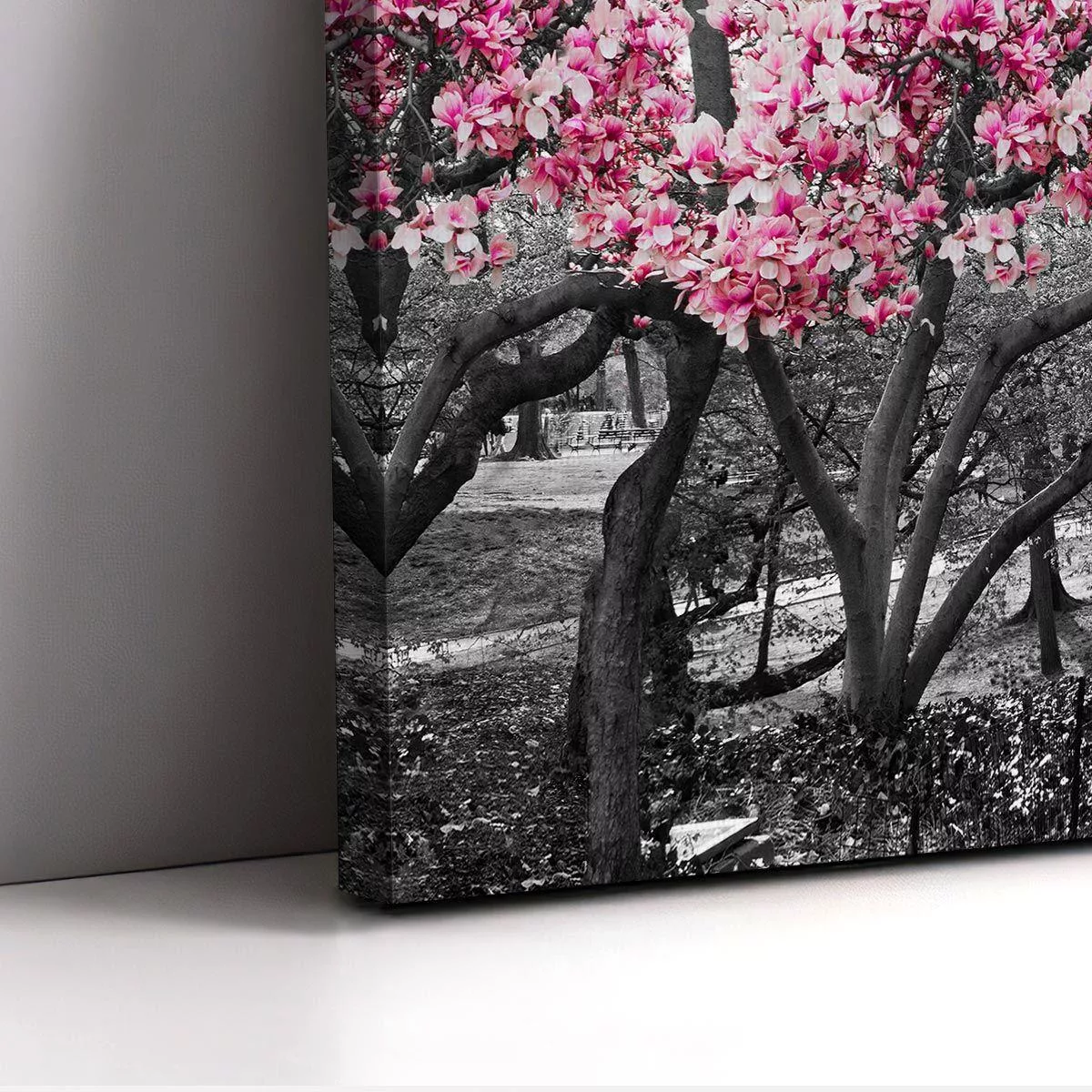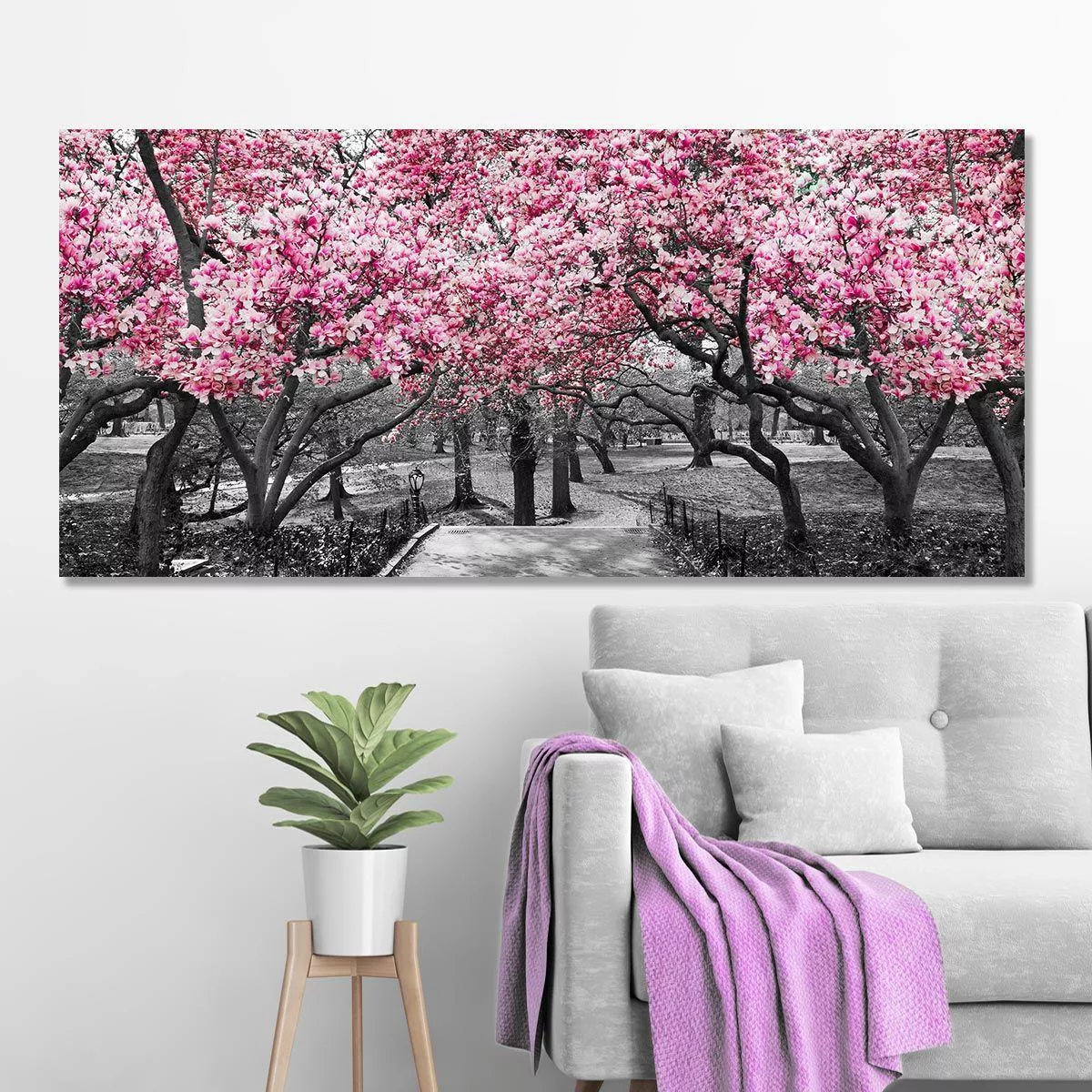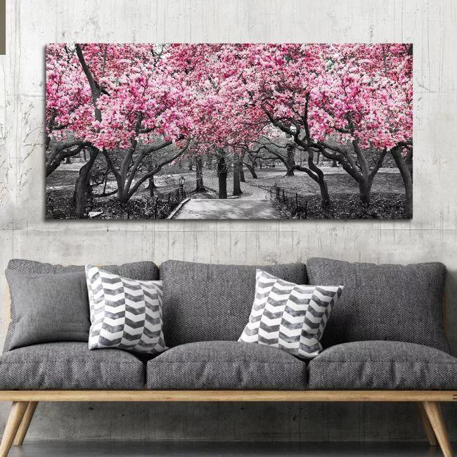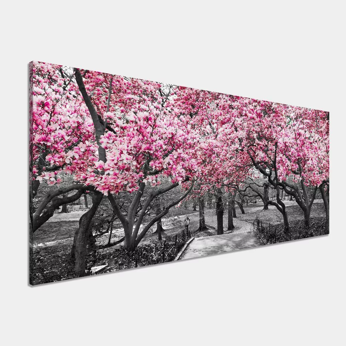 Πίνακας σε καμβά Ανθισμένα δέντρα, Pink blossom central park, πανοραμικός